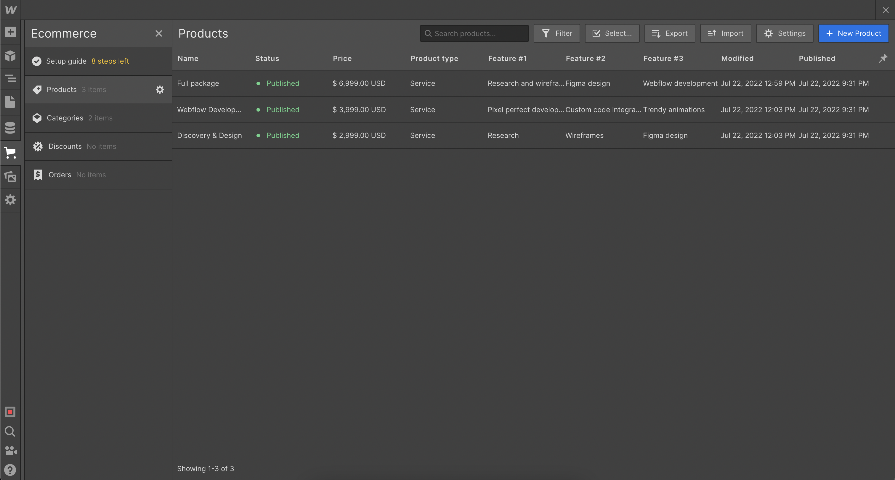 1. Go to "Ecommerce" and click on "Products". Find the product you want to edit and select it.